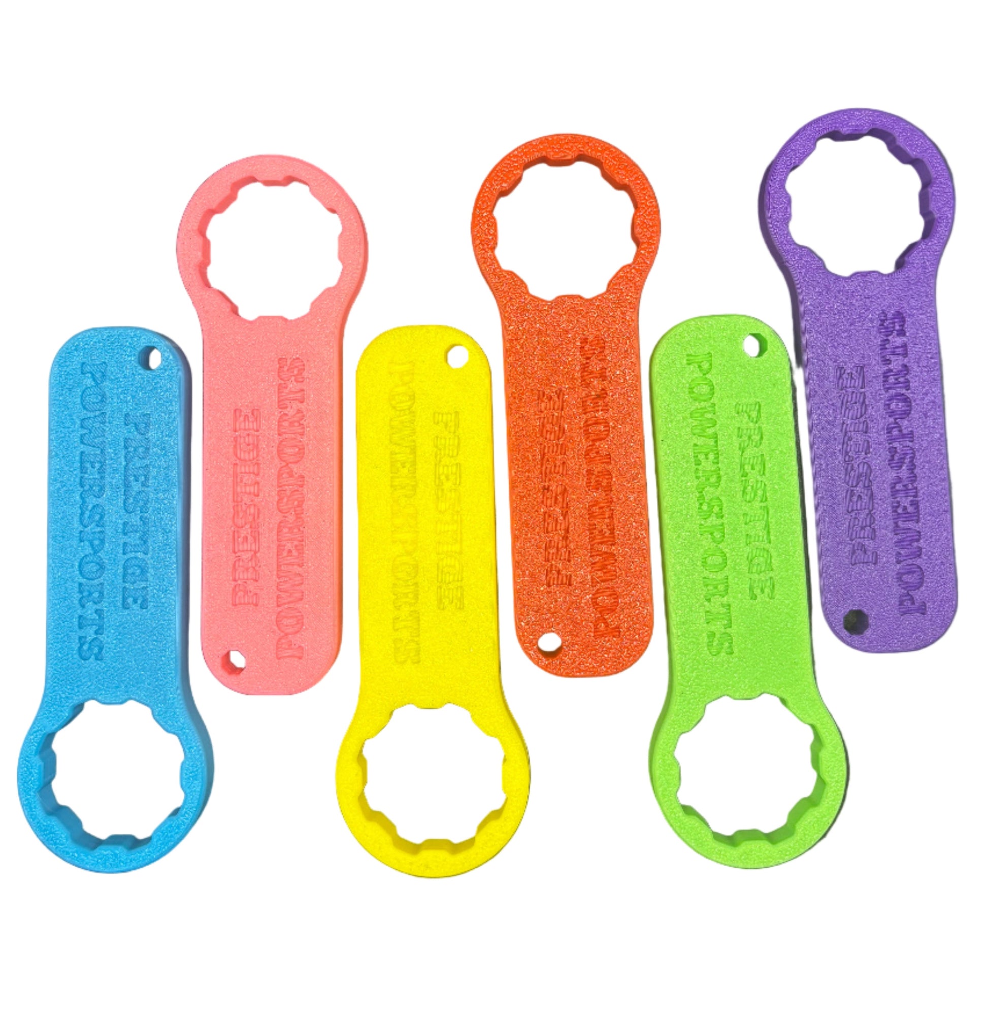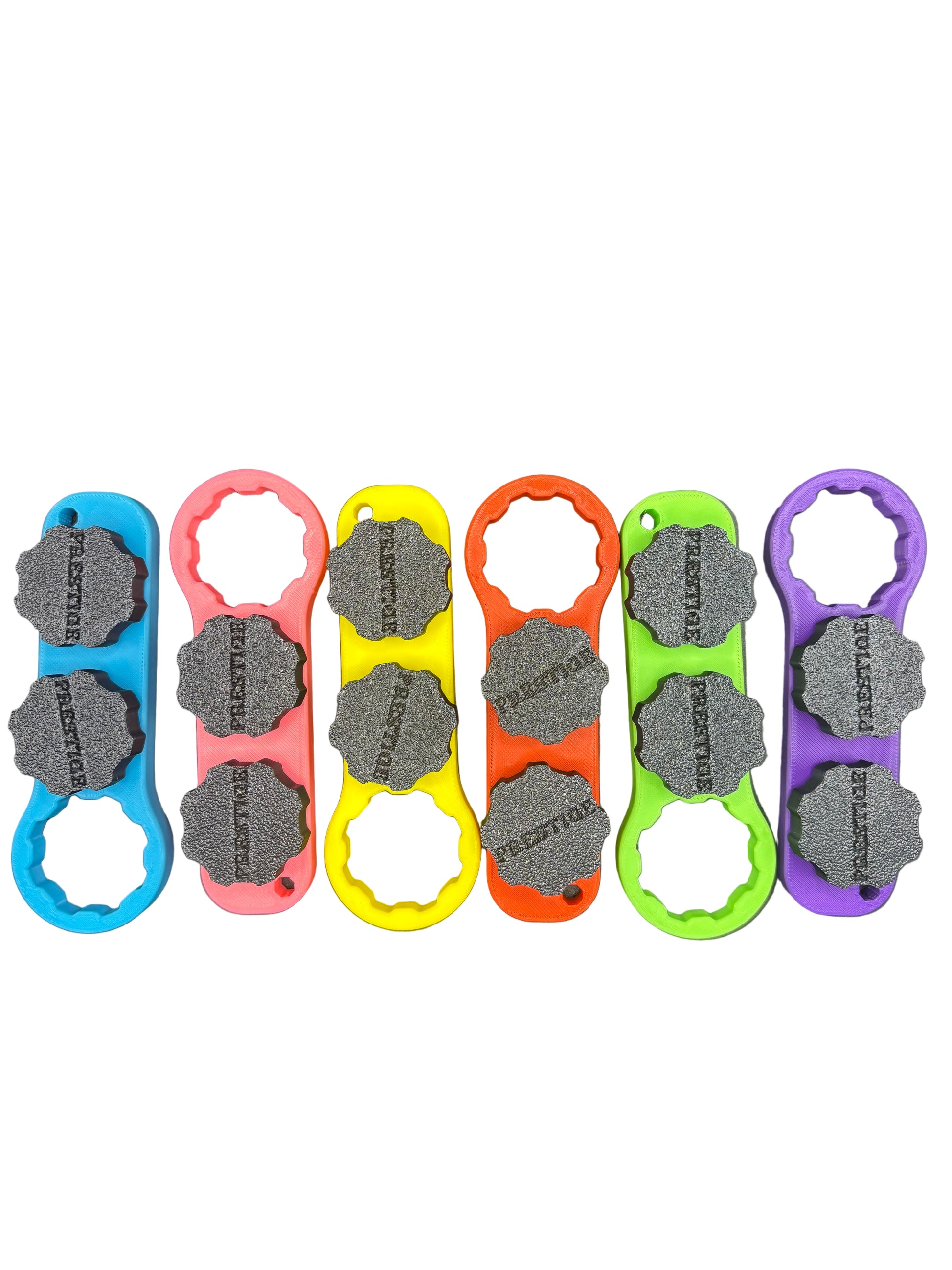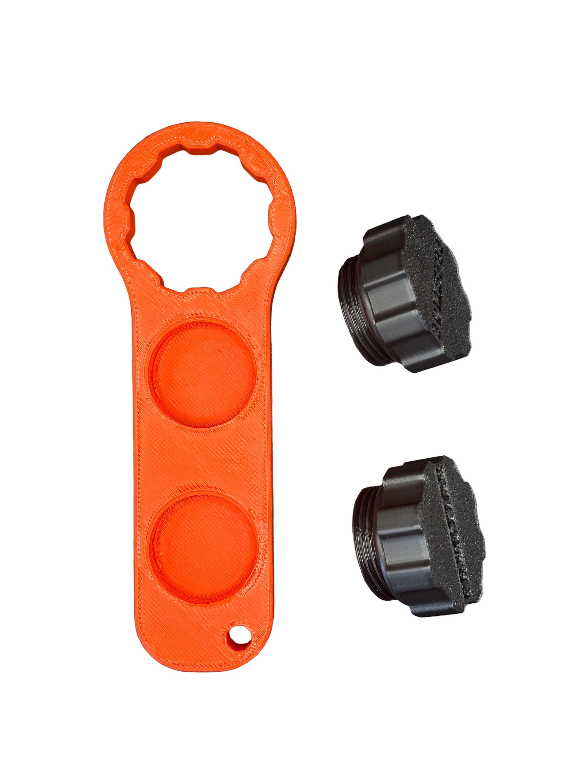 Our ergonomic Bung Mate tool perfectly matches the gear-head design of the bungs, providing maximum leverage for easy removal. Once done, simply screw both bungs into the tool for safe and convenient storage between rides.